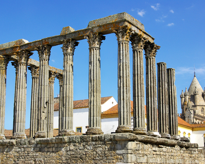 O majestoso Templo de Diana, construído no século I d.C na praça principal de Évora, é um monumento que representa de modo ímpar os vestígios da civilização romana em Portugal. É composto por uma base de granito e colunas de mármore branco. A construção do monumento foi associada à deusa romana da caça “Diana” mas na realidade foi construído durante a ocupação romana em honra do imperador Augusto. Situado no ponto mais alto da cidade fica do lado da Igreja / Pousada dos Lóios.